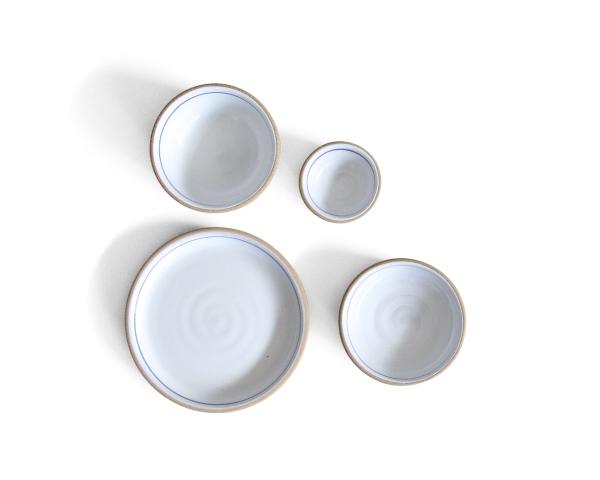 Moss is our most temperamental glaze. Subtle changes in the temperature of the kiln creates a variety of shades — ranging from a matte, neutral sage to a deeper pine-green with a slight sheen to it. We do not consider variation amongst this glaze to be a defect, the variety in fact, it is one of the things we love about it! After the glaze is applied, each piece is hand-wiped, which creates a soft transition on the rim, where the glaze fades into the clay.