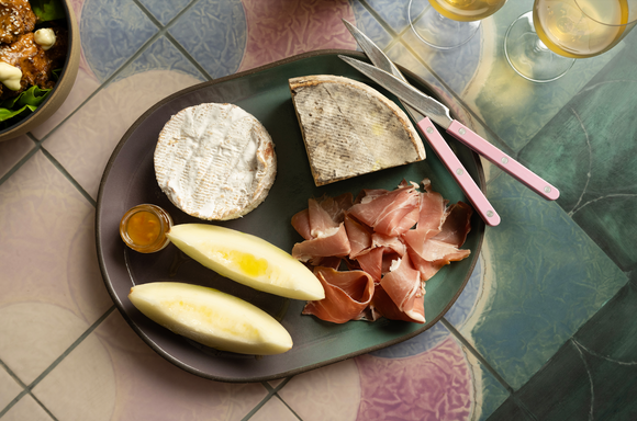 Serving: Local cheese, prosciutto, and melon